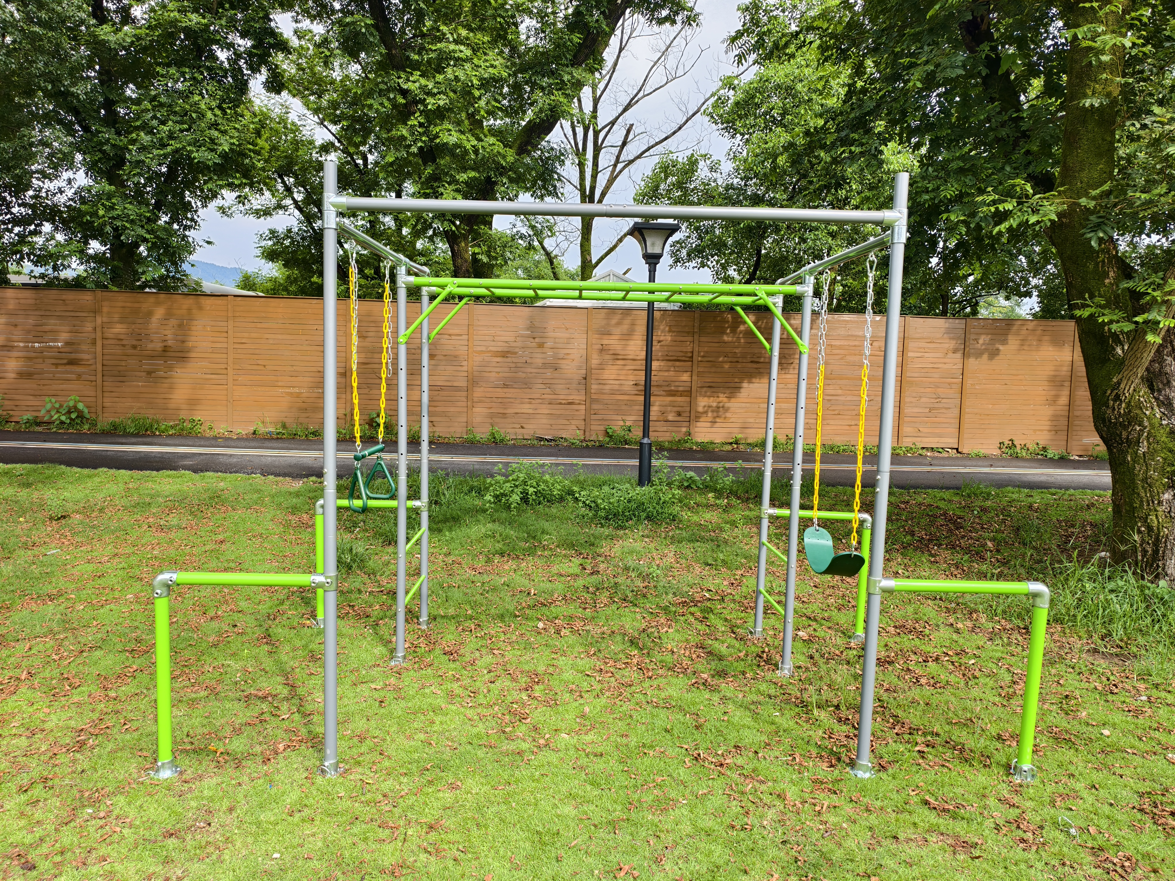 La sécurité est une priorité absolue dans la conception du M03 Swing Set & Monkey Bar . Le cadre présente des bords arrondis pour éviter les rayures, des poignées antidérapantes pour une manipulation sécurisée et des connexions renforcées pour la stabilité. Tous les composants sont soumis à des tests de charge stricts pour répondre aux normes de sécurité internationales, garantissant une utilisation sûre même lors de jeux vigoureux.